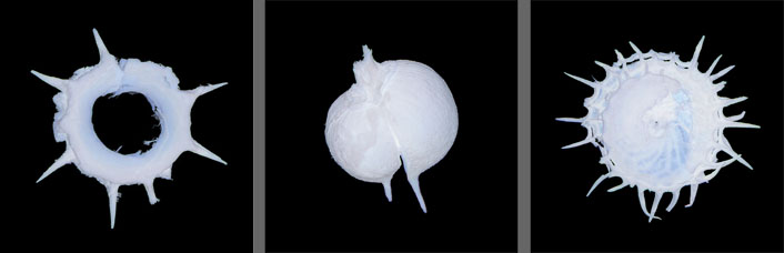 Camera-less photographs, first exhibited at Istanbul Museum of Modern Art, 2013-14. "The series takes its title from the administrative and religious centres of the Lycian civilization, situated in present-day Turkey. While the most important artefacts from Xanthos are now exhibited far from their land of origin, in the British Museum, the Barans go in search of seeds and botanical specimens from this archaeological region: simple, obscure organisms ... silent settlers that continue their existence as the oldest guests to live in Xanthos and Letoon." From Observatory catalogue text by Sena Cakirkaya, 2013 ______________________ Selected works: ![]() Letoon 8, 2007 ![]() Xanthos 7 (verso and recto), 2007 ![]() Xanthos 16, 2007 ![]() Letoon 15, 2007 ![]() Xanthos 11, 3, 1, 2007 ![]() Xanthos 2, 2007 Photographs copyright © Barbara & Zafer Baran www.zb-baran.co.uk |